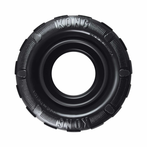 - Tire shaped toy made of durable KONG Extreme Rubber for determined chewers