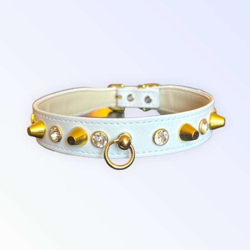 This super soft vegan leather studded collar features gold barrel studs with two star rivet studs, worthy of a true Rockstar! Thank you for shopping at Firstpetsupplies.com.com