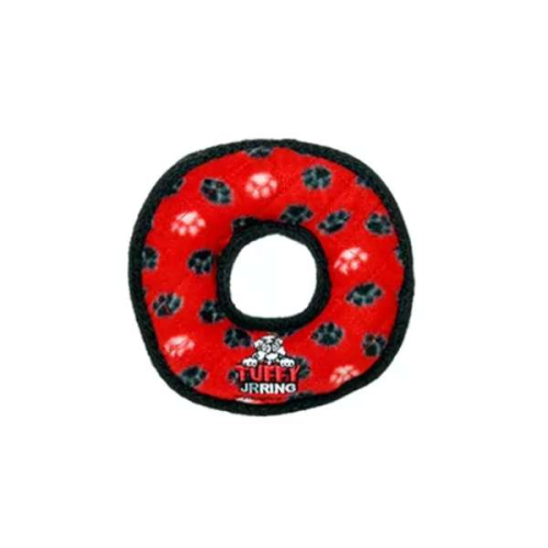 Tuffy Jr Ring Red Paw. Great for interactive play with one or multiple dogs. Best for dogs who like to whip their toys and play tug for hours. Floats in water, and its machine washable, (air dry). 4 LAYERS OF MATERIAL Tuffy Ultimate toys are made with UP TO 4 layers. 1 layer soft fleece on the outside. 1 to 2 layers of industrial grade luggage material on the inside. 1 layer of plastic coating on the inside. Thank you for shopping at Firstpetsupplies.com.com