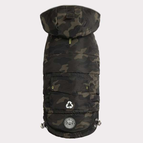 The GF Pet Recycled Parka is made from 100% recycled fabrics. The fabric used to make this sustainable parka is produced from recycled water bottles and is responsible, versatile, heritage-inspired and weather resistent. Enjoy the ever-stylish GF Pet signature contrast binding and accents. With its' tackable hood, practical real pocket and reflective piping, it will keep your dog protected and cozy. Super adjustable, with patented Elasto-Fit technology! For dogs and owners who are proud to support our planet. Thank you for shopping at Firstpetsupplies.com.com