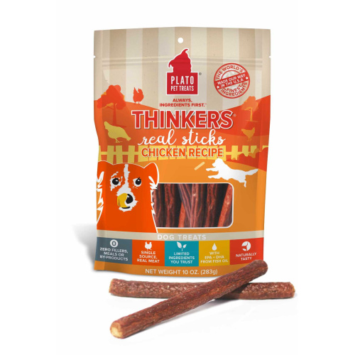 Thinkers are hearty, meat-packed sticks with added EPA and DHA to support healthy brain function. Made with real meat as the 1st ingredient, these treats are made with limited ingredients, are naturally preserved, and contain no artificial flavors, corn, wheat, or soy. Because of their large size, Thinkers offer substantial chewing satisfaction or can be broken into smaller pieces to create multiple treats. And we take the extra time to air-dry them in batches in our USA facility instead of baking them in order to retain more of the ingredients' inherent nutrients (but your dog will just think that they smell and taste amazing). It takes longer, but we think its worth it.