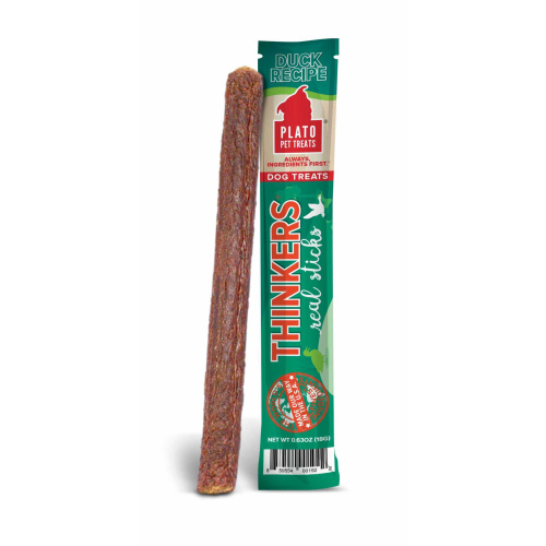 Thinkers are hearty, meat-packed sticks with added EPA and DHA to support healthy brain function. Made with real meat as the 1st ingredient, these treats are made with limited ingredients, are naturally preserved, and contain no artificial flavors, corn, wheat, or soy. Because of their large size, Thinkers offer substantial chewing satisfaction or can be broken into smaller pieces to create multiple treats. And we take the extra time to air-dry them in batches in our USA facility instead of baking them in order to retain more of the ingredients' inherent nutrients (but your dog will just think that they smell and taste amazing). It takes longer, but we think its worth it.