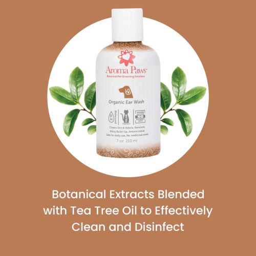 Aroma Paws Organic Ear WashOur gentle formula effectively cleans dirt and debris while removing waxy build-up from your pet's ears. The blend is designed to clean and disinfect while maintaining the proper pH balance.Tea Tree Essential Oil is an antifungal and antimicrobial agent that helps keep ears free of microbes that may cause infection. Plus, there's no medicinal smell!To use, simply pour a small amount onto a clean cloth or cotton ball and rub the inside of your pet's ear to loosen and remove dirt and debris. Remember not to use cotton swabs or any pointed objects in your pet's ear canal. Keep your furry friend's ears clean and healthy with Aroma Paws Organic Ear Wash! Thank you for shopping at Firstpetsupplies.com.com