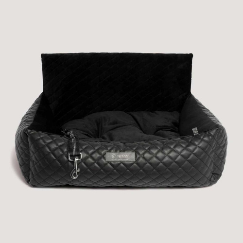 Introducing our new Large Black Vegan Leather Car Seat 2.0. Your dog will love the quilted micro plush material. You will feel at ease knowing he or she is safely tucked away with the safety hook and seat belt straps. The Jet Black color scheme offers an air of sophistication to your car. The bed provides amazing comfort for your dog with the natural poly fiberfill. And beyond the comfort and ease for your dog, it ensures a safe ride for your best friend.FEATURES* Larger in size then our original Black Vegan Leather Car Seat * New Bungee strap safety hook * Classic modern design quilted vegan leather* Soft and cuddly fabric material * Simple and clean look* The sophisticated look goes well with any car * Filled with natural poly fiber* Increase the safety of your dog while in the car.* This product must be used with a harness SIZING APPROXIMATELY 22" x 15" Thank you for shopping at Firstpetsupplies.com.com
