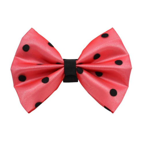 Organza and satin polka dot bow trimmed on a velcro safety fastener