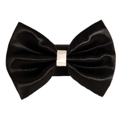 Wedding satin bow with white trim on a velcro safety fastener
