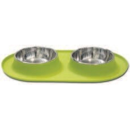 The non-slip silicone base prevents damage to your floors and holds 2 stainless steel bowls in place for your mutt. Contain any further messes with the wide lip and raised edge border.