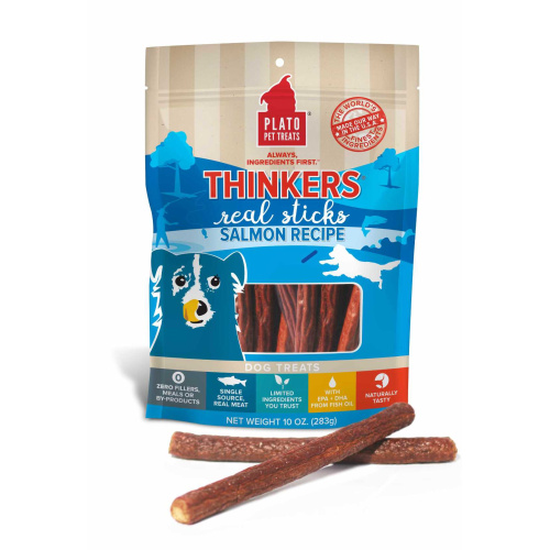 Thinkers are hearty, meat-packed sticks with added EPA and DHA to support healthy brain function. Made with real meat as the 1st ingredient, these treats are made with limited ingredients, are naturally preserved, and contain no artificial flavors, corn, wheat, or soy. Because of their large size, Thinkers offer substantial chewing satisfaction or can be broken into smaller pieces to create multiple treats. And we take the extra time to air-dry them in batches in our USA facility instead of baking them in order to retain more of the ingredients' inherent nutrients (but your dog will just think that they smell and taste amazing). It takes longer, but we think its worth it.