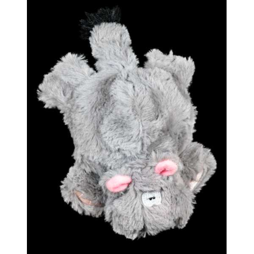 Nylon-reinforced plush is filled with a squeaky, spiky ball.