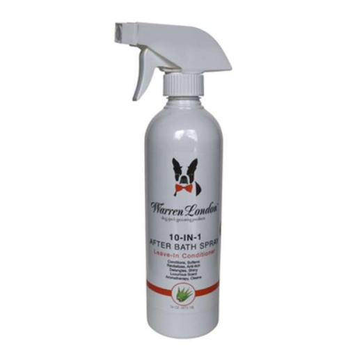 Warren London 10-in-1 After Bath Spray is a professionally formulated leave in conditioner spray with ten amazing benefits... Conditions, Softens, Revitalizes, Prevents Itch, Prevents Flake, Detangles, Shines, Luxurious Scent, Aromatherapy, and Cleans. Contains naturally simple ingredients infused with aloe vera, silk amino acids, and green tea leaf extract for healthy coat. Works on all coats. Simply spray with no need to rinse. Thank you for shopping at Firstpetsupplies.com.com