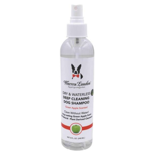 Warren London Dry & Waterless Deep Cleaning Shampoo is a convenient way to clean your dog in between baths while on the go without the mess. The simple no-rinse formula is quick and effective, and leaves the coat feeling and smelling fresh with a long lasting Green Apple scent. The formula is alcohol free and relies on naturally derived plant active ingredients to safely combat bacteria and clean skin & coat. Thank you for shopping at Firstpetsupplies.com.com